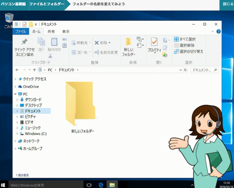 パソコン基礎編では、Windows10パソコンの電源の入れ方や切り方、マウスやキーボード操作はもちろん、作成したデータの保存方法や間違った場所にデータを保存してしまった時のデータの移動方法などをゆっくとしたスピードの動画で学ぶことができます。
